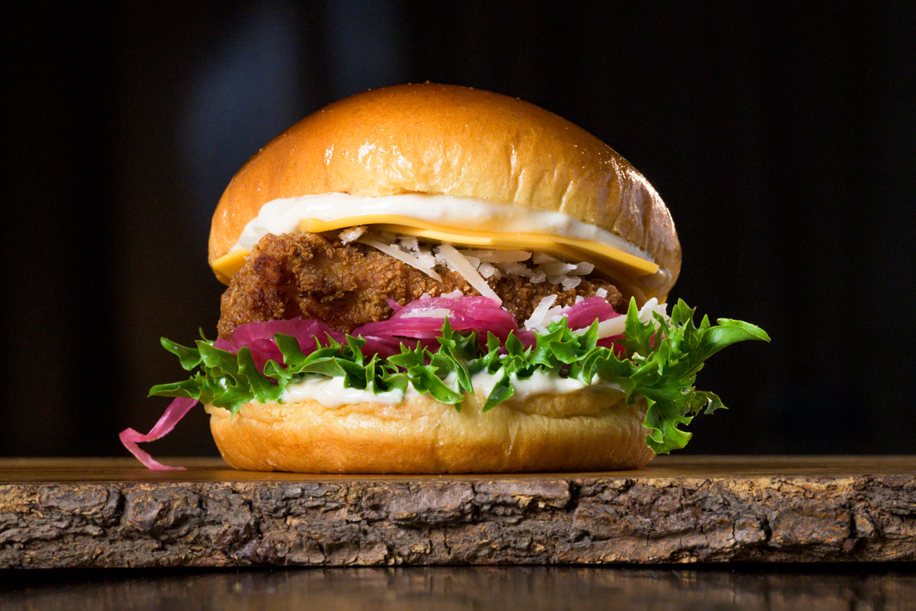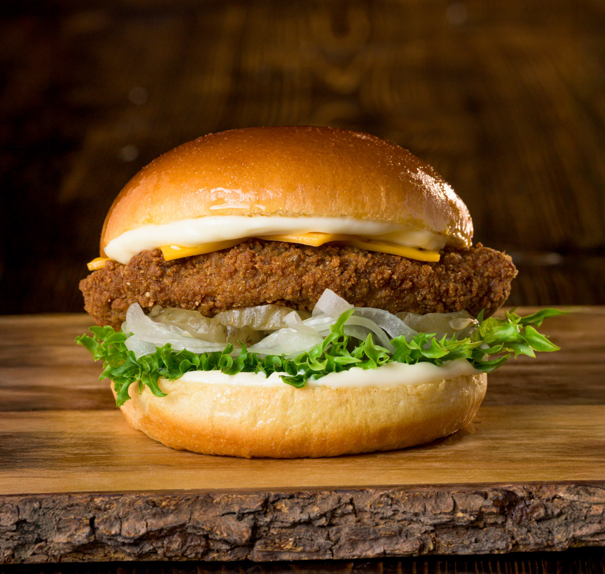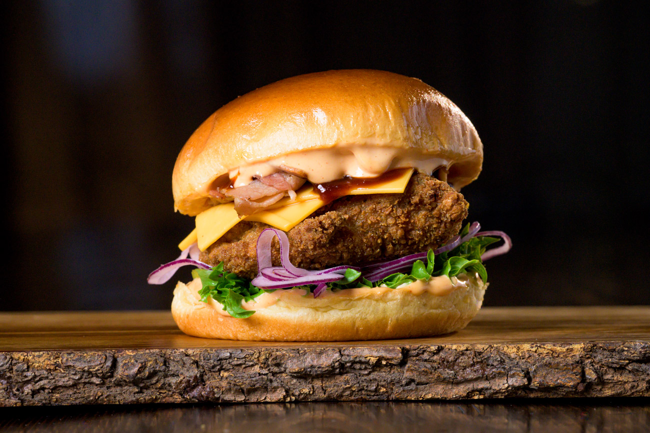 Krispig kyckling, bacon, cheddarost, rödlök, chilimajonnäs och BBQ-sås.